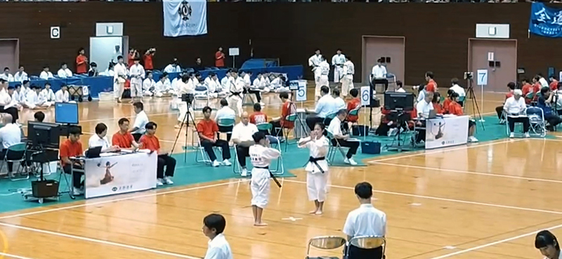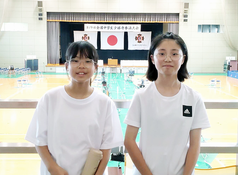 令和7年8月2日(土)3日(日)、宮崎県都城市内の早水公園体育文化センターにおいて、第19回全国中学生少林寺拳法大会が開催され、松尾台小学校で修練している少林寺拳法猪名川南スポーツ少年団に所属する女子中学生2名が出場しました。