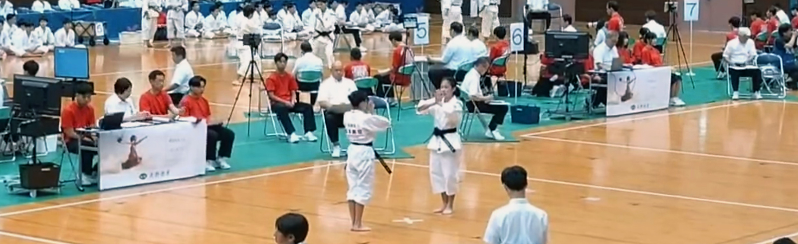 令和7年8月2日(土)3日(日)、宮崎県都城市内の早水公園体育文化センターにおいて、第19回全国中学生少林寺拳法大会が開催され、松尾台小学校で修練している少林寺拳法猪名川南スポーツ少年団に所属する女子中学生2名が出場しました。